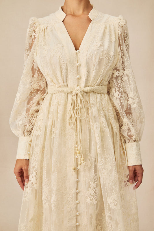 Madeline V-Neck Lace Embroidered Midi Dress
