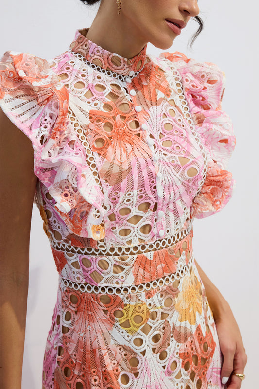 Alessia Floral Print Ruffle Cuff Maxi Dress