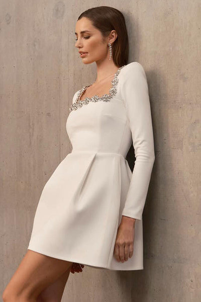 Alexia Square Collar Rhinestone Trim Mini Dress