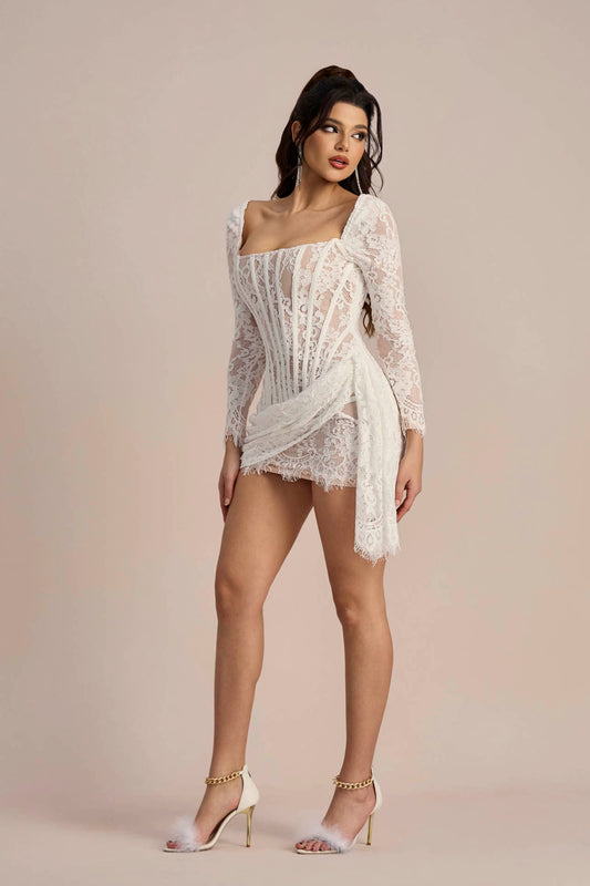 Stephanie Puff Sleeve Plunge Neck Mini Dress