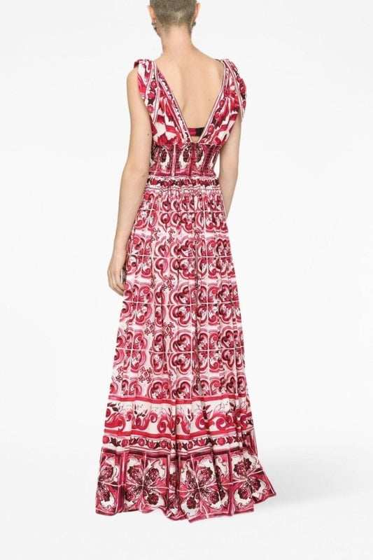 Hilda Ruffle Ribbon Backless Maxi Dress