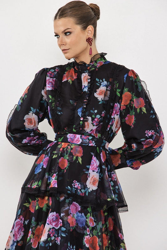Paula Embroidered Lace Puff Sleeve Maxi Dress