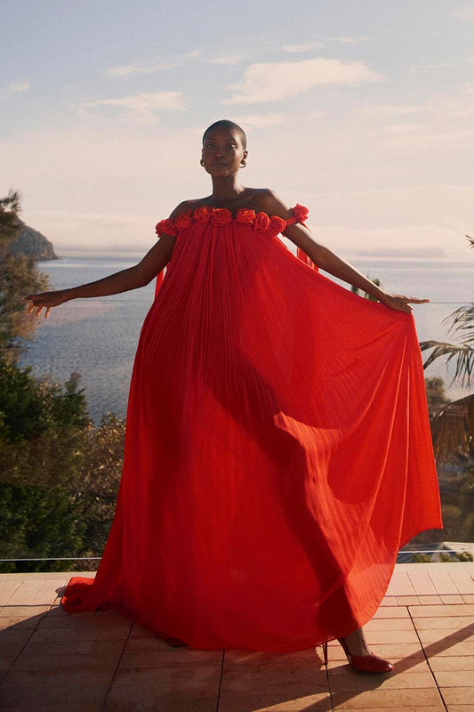 Regina Off Shoulder Rosette Detail Maxi Dress