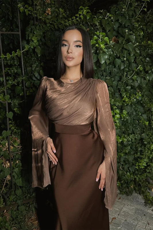 Marcia Long Sleeve Ruched Organza Maxi Dress