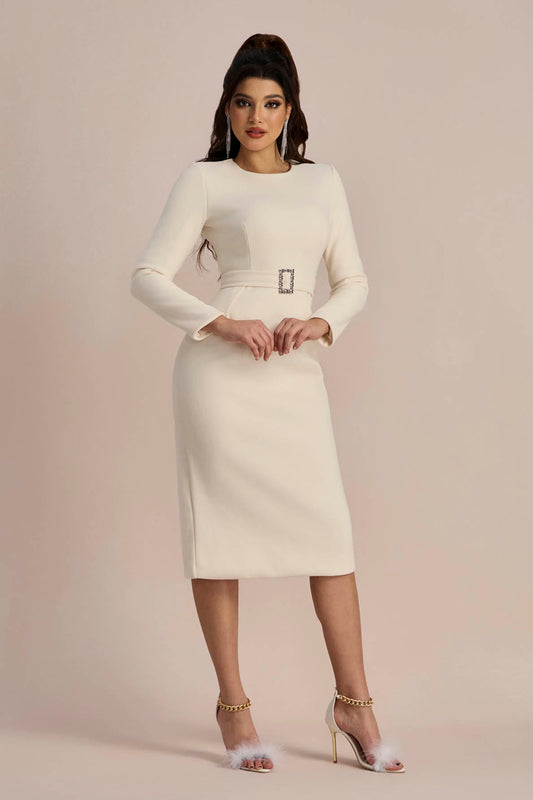 Daphne Notch Lapel Long Sleeve Midi Dress