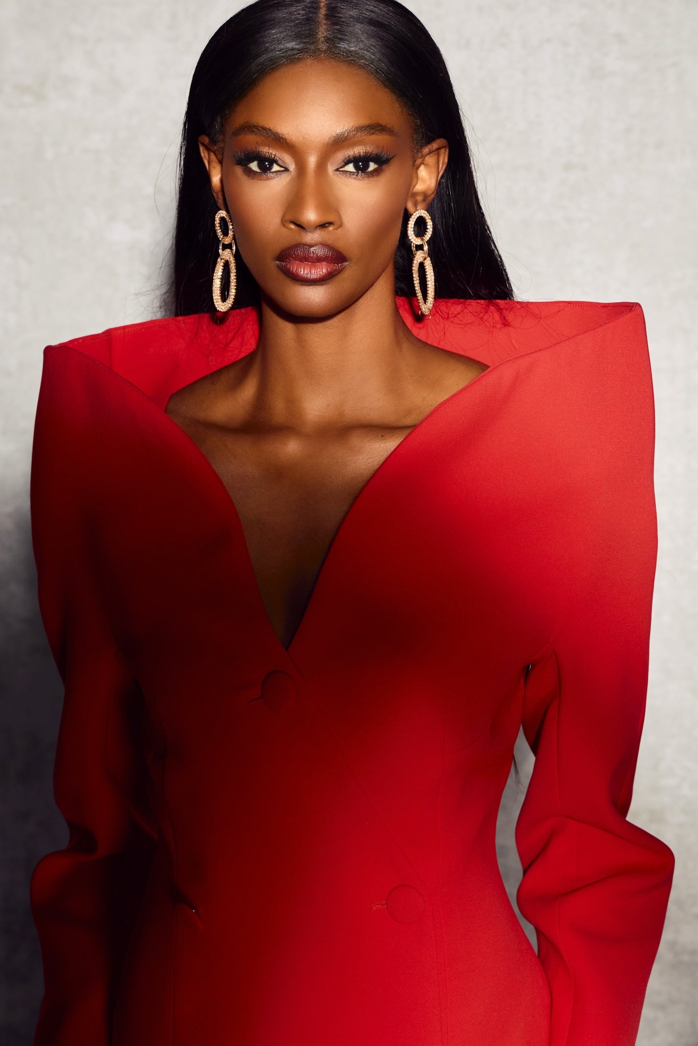 Sculpted Self-Stand Collar, Strap Inside the Lapel, Blazer Dress, Double-breasted.