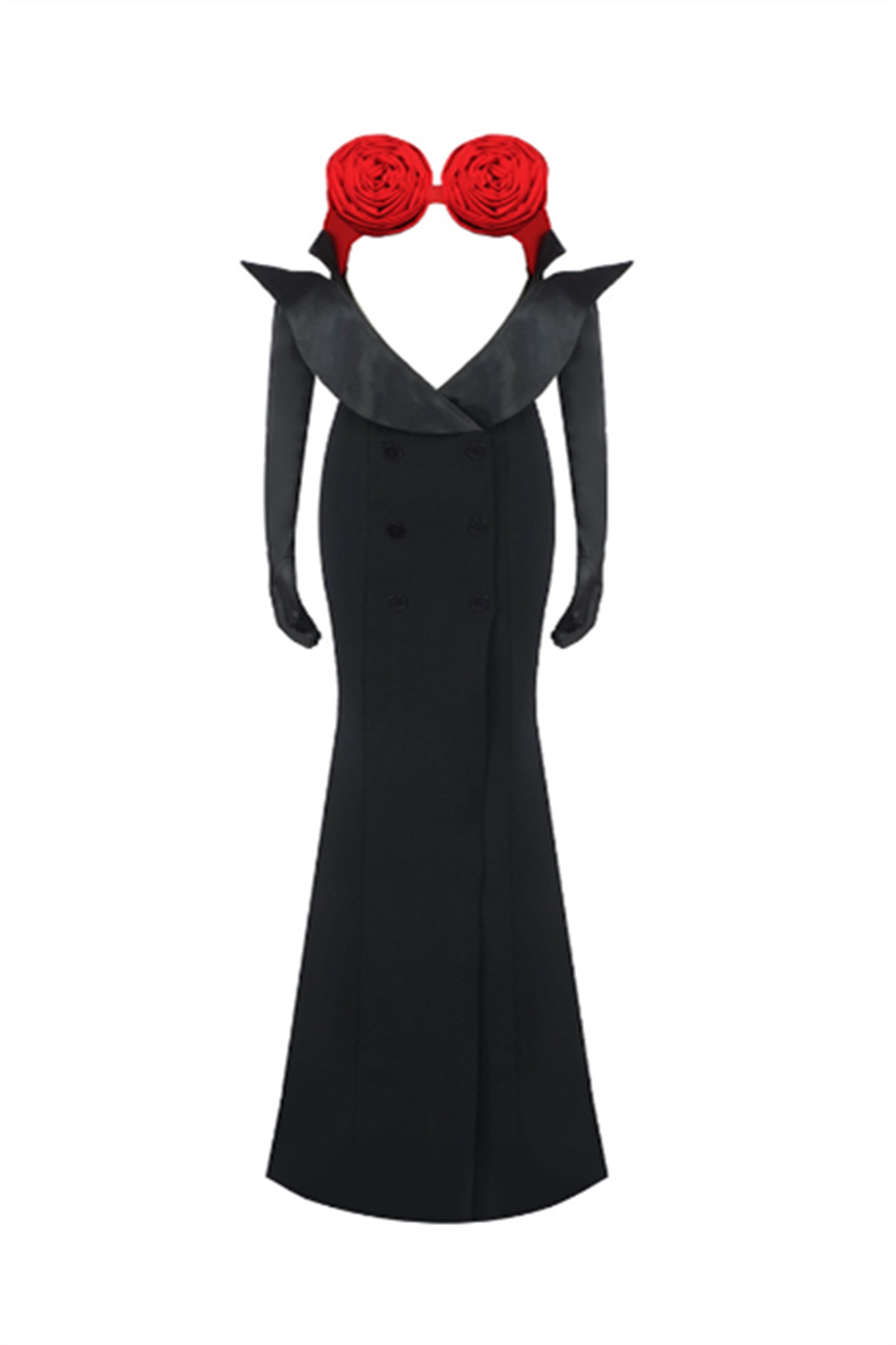 Bandage Dress, Strapless Design, Sleeveless, Rose Bustier, With Gloves, Cut-out Detail, Colorblock Design, Mermaid Design, Maxi Length.